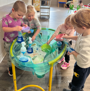 By painting, cutting and pasting, playing with puzzles, and games – the children explore their artistic creativity while supporting the development of their fine motor skills. Sensory bins and play dough that help to stimulate a child’s senses, also support their fine motor skills, as well as language development, cognitive growth, and fosters social interaction and peer engagement.