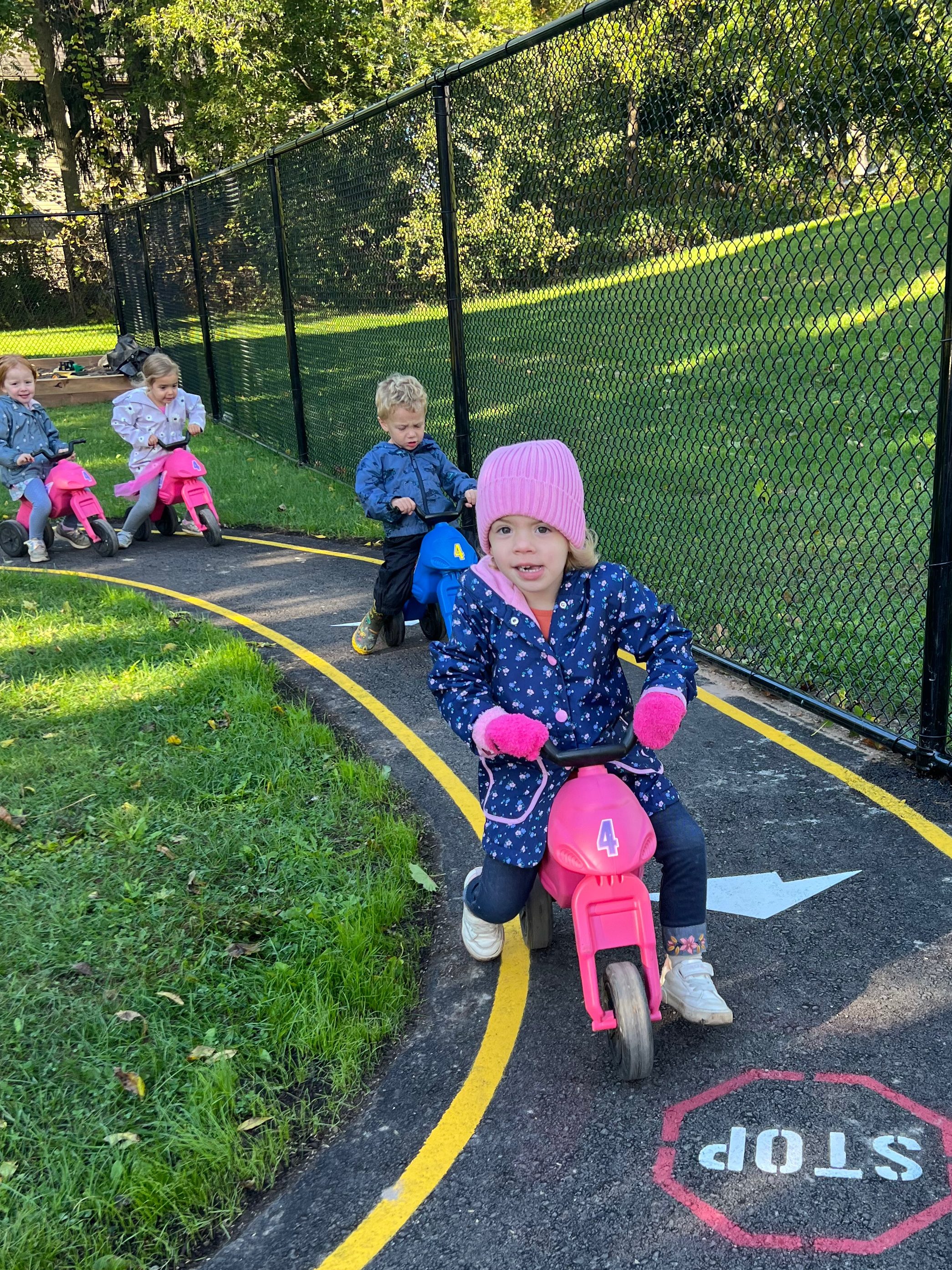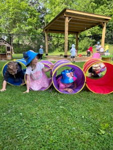 Outdoor play, riding bikes, dancing to music, balancing on beams, and crawling through tunnels – all enhance the development of gross motor skills and co-operation.